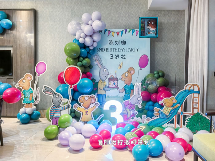 新中式 国风 宝宝宴 生日布置 3岁宝宝宴 派对布置 酒店生日布置 襄阳气球布置 绘本 皮普和波西